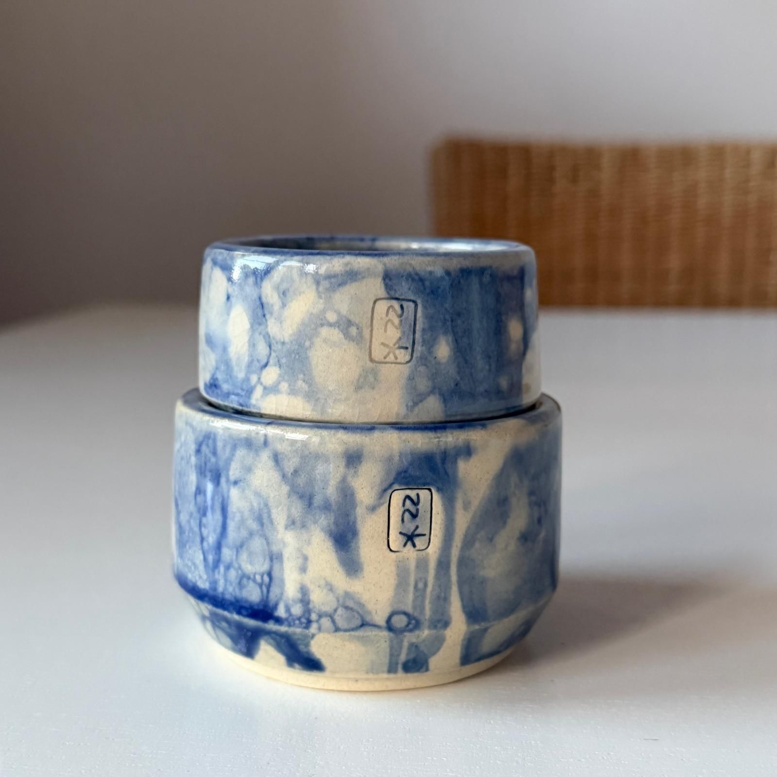 Arcilla refractaria modelada a mano, cocida a 1250°. Furnitura en plata de ley.
