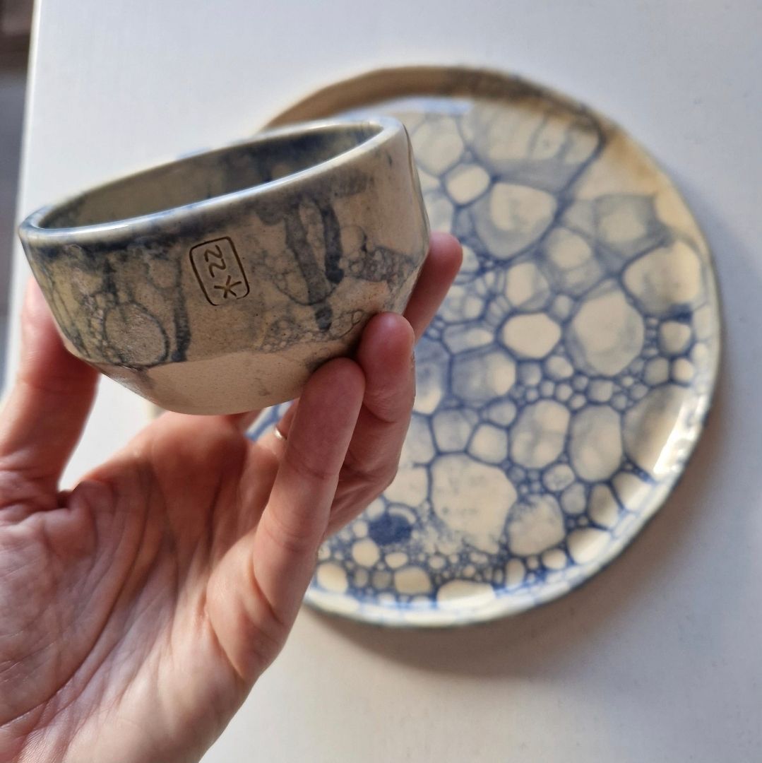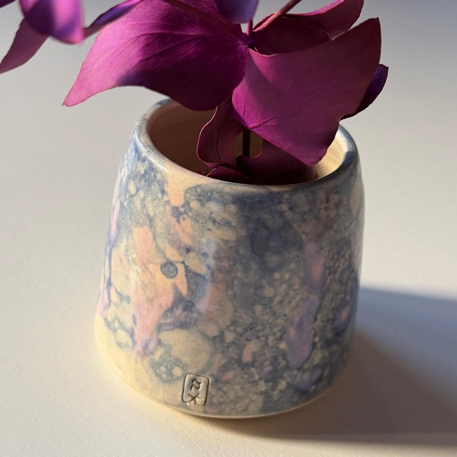 Arcilla refractaria modelada a mano, cocida a 1250°. Furnitura en plata de ley.